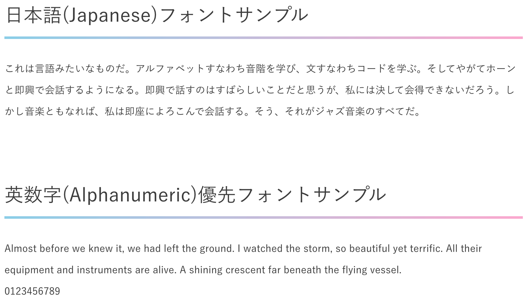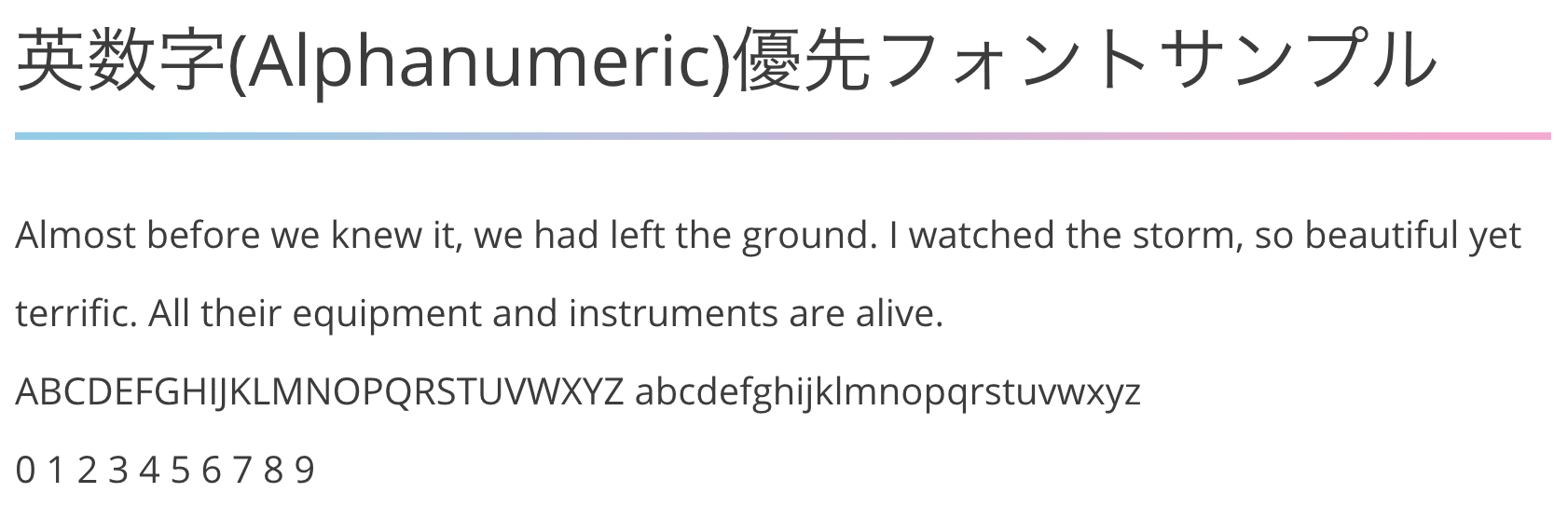 英数字は指定した日本語フォントではなく、別のフォントを優先して反映したい場合は、以下のウェブフォントから選べます。